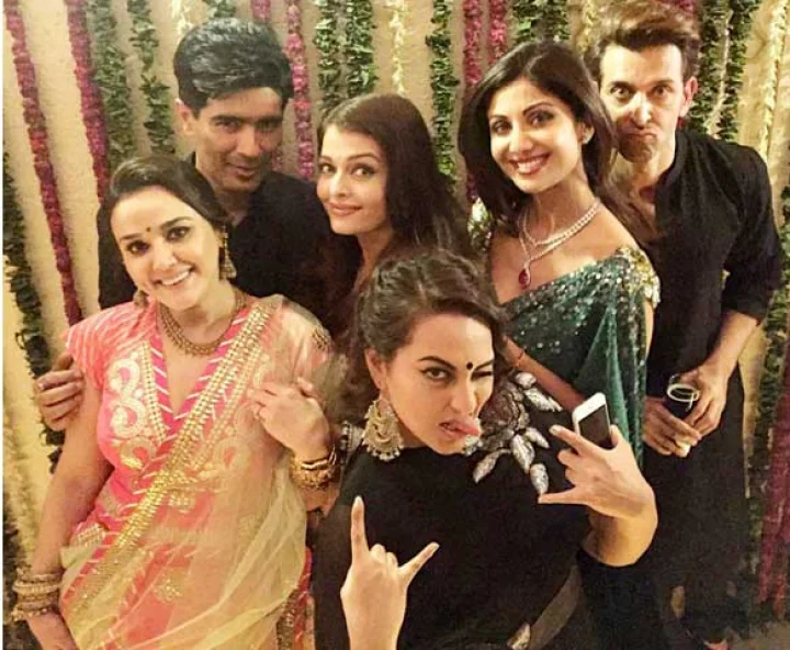 बच्चन परिवार की दिवाली पार्टी में बॉलीवुड की जानी मानी हस्तियां पहुचीं। शाहरुख खान, रितिक रोशन, करण जौहर, रणबीर सिंह, दीपिका पादुकोण, सोनाक्षी सिन्हा सहित फिल्मी दुनिया के कई चमकते सितारे पार्टी में मौजूद थे।