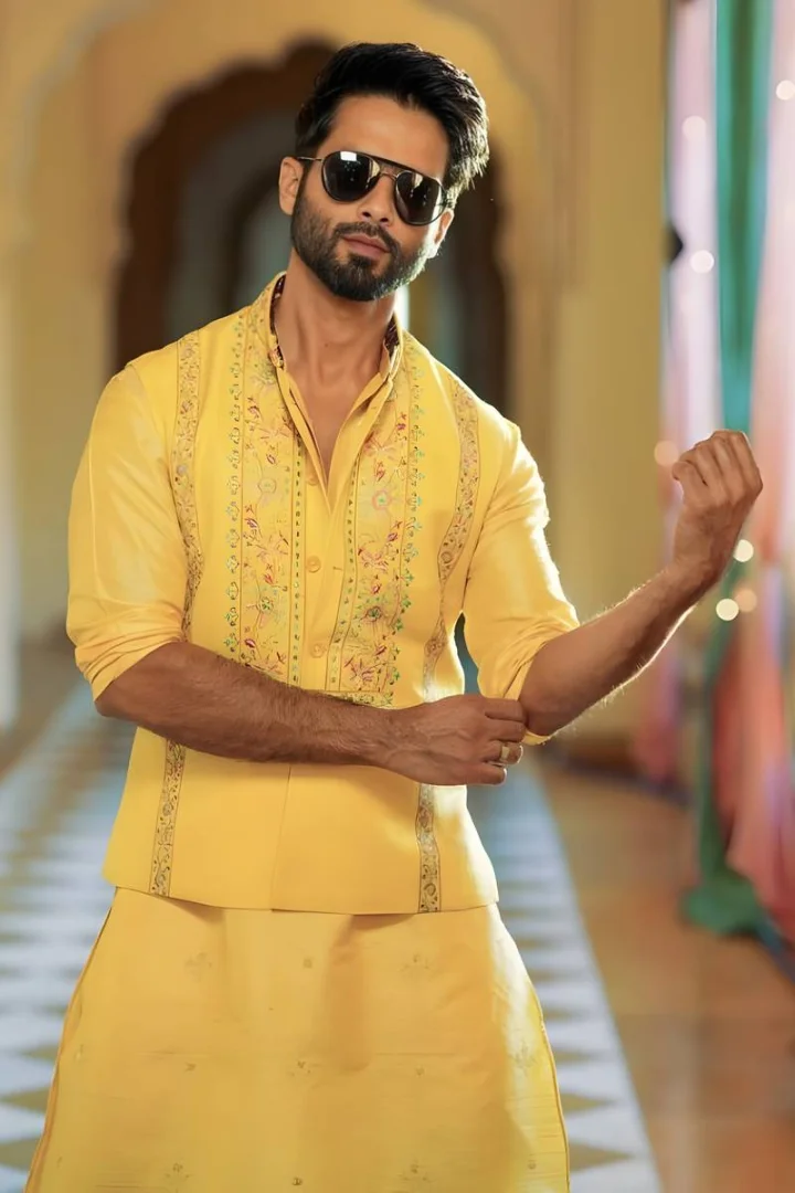 शाहिद कपूर ने पीले रंग में क्लासी और बैलेंस्ड अंदाज़ अपनाया है। उनका सॉफ्ट, लेकिन स्ट्रॉन्ग लुक शांति और आत्मविश्वास का प्रतीक बना हुआ है।