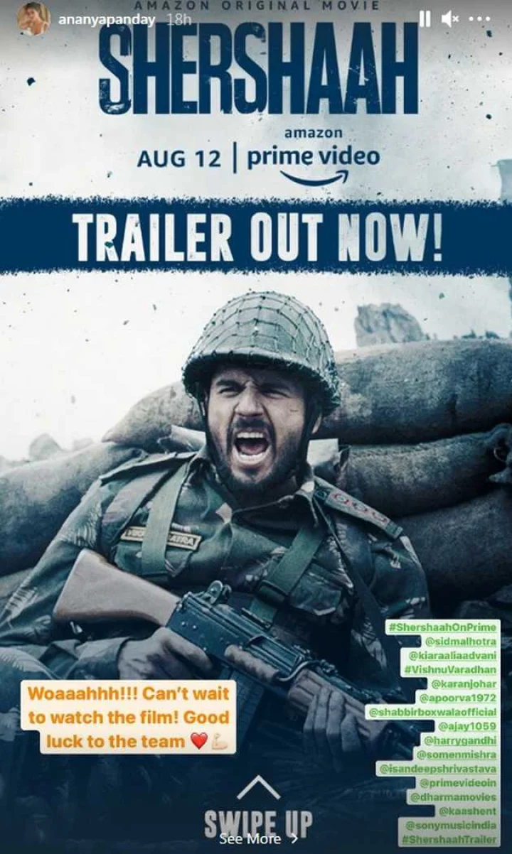 जाह्नवी कपूर ने लिखा, ऐसा साहस, बहादुरी और जुनून हमेशा प्रेरित करता है। शेरशाह की पूरी टीम को इस प्रेरक कहानी को स्क्रीन के माध्यम से हमतक लाने के लिए सभी को प्यार और शुभकामनाएं। मैं इसे देखने के लिए और इंतजार नहीं कर सकती।