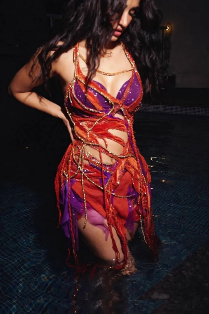 तस्वीरों में दिशा मल्टीकलर की कटआउट शॉर्ट ड्रेस पहने नजर आ रही हैं। इस आउटफिट में दिशा अपना कर्वी फिगर और टोन्ड लेग्स फ्लॉन्ट करती दिख रही हैं।