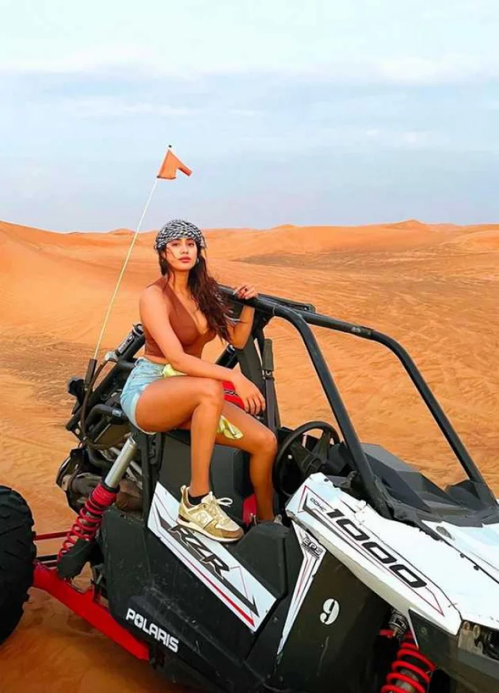 इन तस्वीरों में जाह्नवी और खुशी का हॉट अंदाज नजर आ रहा है। दोनों बहनें रेगिस्तान में चिल करती नजर आ रही हैं। जाह्नवी ने ब्राउन टैंक टॉप और शॉर्ट्स पहने हैं। वह डेजर्ट राइड एंजॉय करती दिख रही हैं।