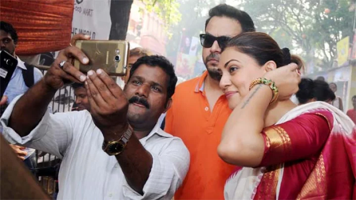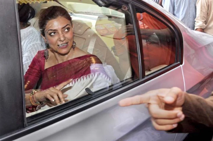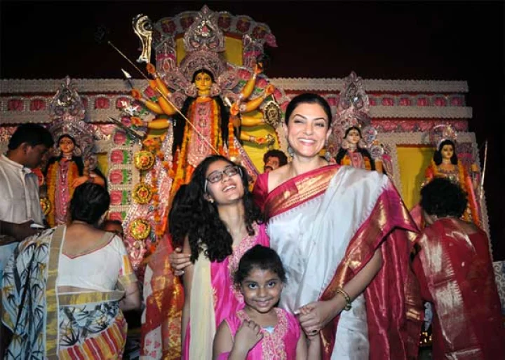 मुंबई में फिल्म अभिनेत्री और पूर्व मिस यूनिवर्स सुष्मिता सेन दुर्गा पूजा के दौरान देखी गईं। इन दिनों एक टीवी शो में जज की भूमिका निभा रही सुष्मिता बेहद प्रफुल्लित नजर आ रही थीं। वे मां की भक्त हैं। (सभी चित्र: Ashish Vaishnav / Indus Images)...