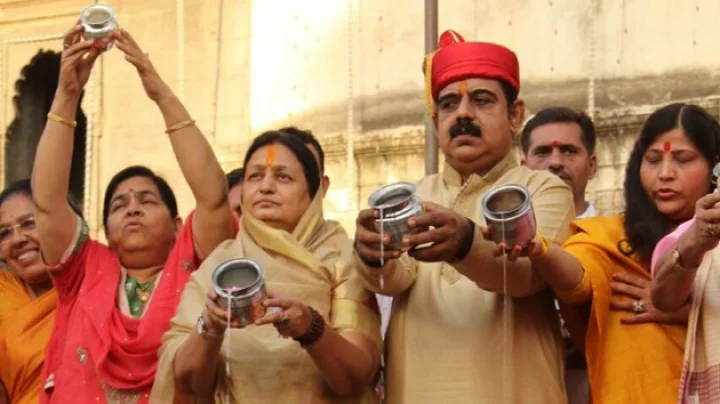 इंदौर। नए वर्ष के अभिनंदन में बुधवार को शहर के हृदय स्थल राजबाड़ा पर शहरवासी उमड़ें और भगवान सूर्य को देश की पवित्र नदियों के जल से अर्ध्य देकर नववर्ष का स्वागत किया।