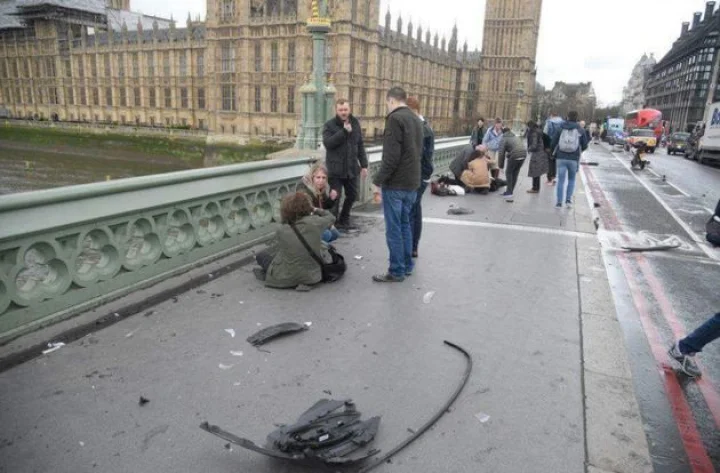 वहीं एक संबंधित घटनाक्रम में वेस्टमिंस्टर ब्रिज पर एक हुंदै आई 40 कार ने कई राहगीरों को कुचल दिया। इस घटना में एक महिला की मौत हो गई। इसके बाद कार पैलेस ऑफ वेस्टमिंस्टर के किनारे की लोहे की रेलिंग से टकरा गई। इस भवन में हाउस ऑफ कामंस और लार्डस के साथ-साथ ऐतिहासिक बिग बेन भी है।