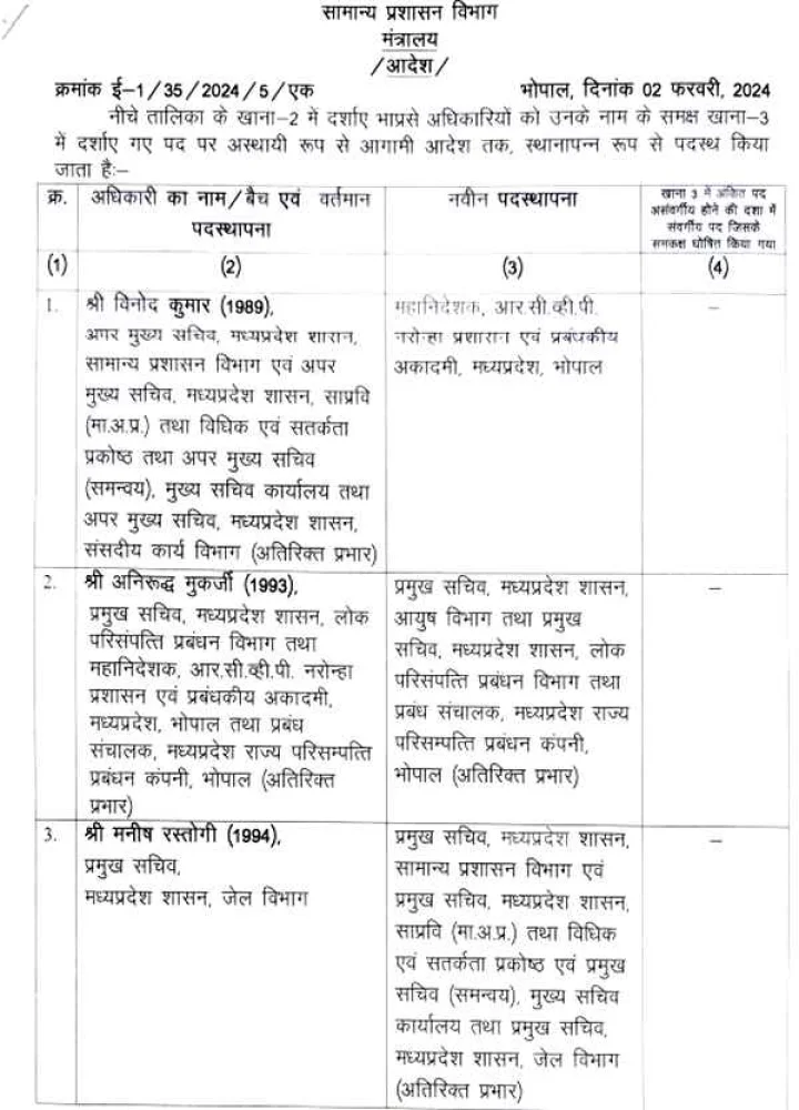 मध्य प्रदेश में 15 IAS अधिकारियों का तबादला
