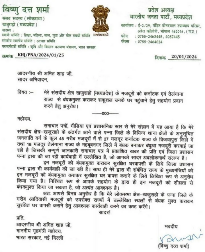वीडी शर्मा के प्रयासों से तेलंगाना से मुक्त हुए पन्ना के 14 मजदूर, गृहमंत्री अमित शाह का जताया आभार