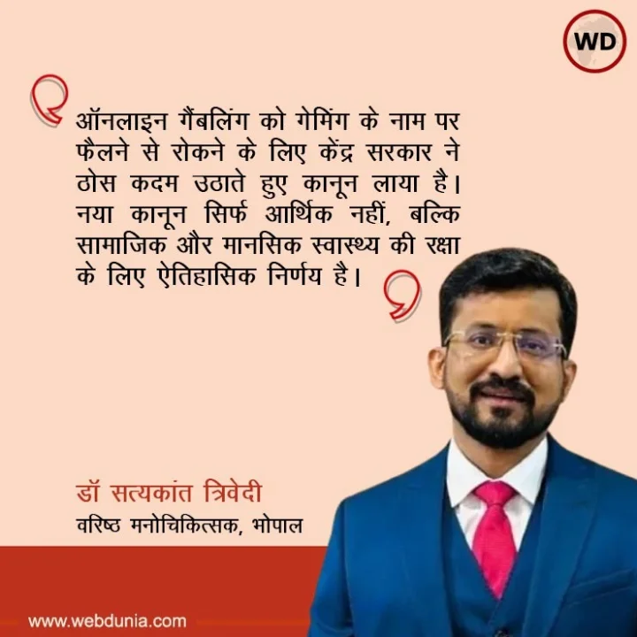वरिष्ठ मनोचिकित्सक डॉक्टर सत्यकांत त्रिवेदी कहते हैं कि ऑनलाइन गैंबलिंग को गेमिंग के नाम पर फैलने से रोकने का ठोस कदम उठाते हुए केंद्र सरकार जो नया कानून ला रही है वह वह एक स्वागतयोग्य कदम है। लाया। मुझे लगता है कि यह सिर्फ़ आर्थिक नहीं, बल्कि सामाजिक और मानसिक स्वास्थ्य की रक्षा की दिशा में भी एक ऐतिहासिक निर्णय है।