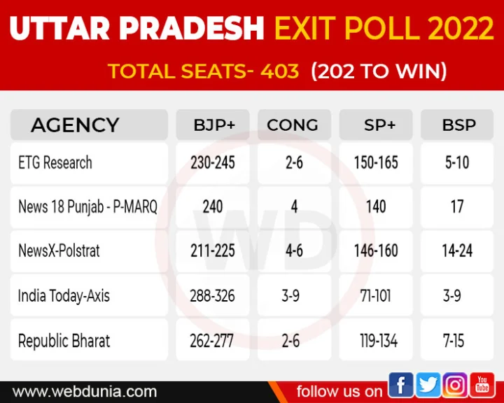 Exit Poll Results 2022 : यूपी में फिर योगी सरकार, पंजाब में AAP पर विश्वास, मणिपुर में भाजपा रिटर्न, उत्तराखंड-गोवा में कड़ा मुकाबला