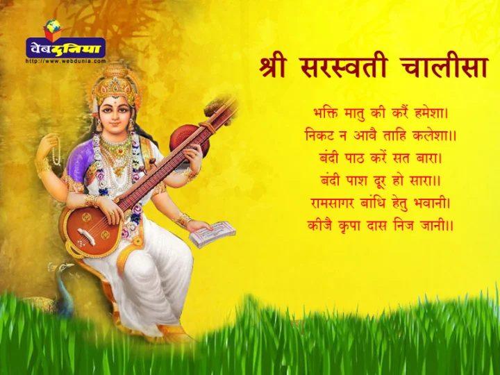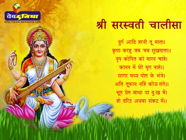 वसंत ऋतु में पंचमी का उत्सव 'मां सरस्वती' के जन्मदिन के रूप में संपूर्ण भारत में मनाया जाता है। इस दिन शुभ्रवसना, वीणावादिनी, मंद-मंद मुस्कुराती, हंस पर विराजमान होकर मां सरस्वती मानव जीवन के अज्ञान को दूर कर ज्ञान के प्रकाश से आलोकित करती हैं। पढ़ें संपूर्ण सरस्वती चालीसा :