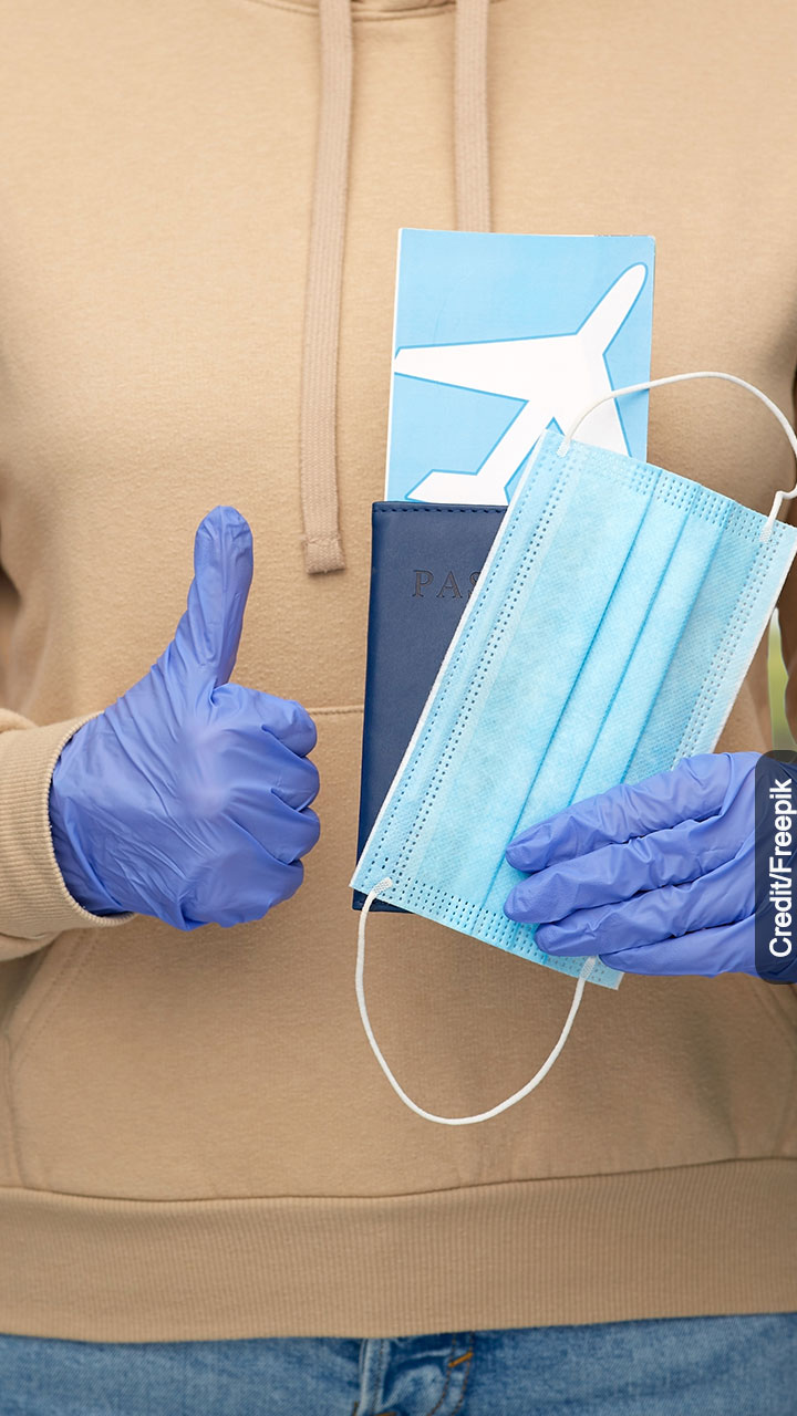 साफ-सफाई और कोविड से बचाव के लिए सैनिटाइजर और मास्क जरूर साथ रखें, खासकर एयरपोर्ट टचप्वाइंट्स पर।