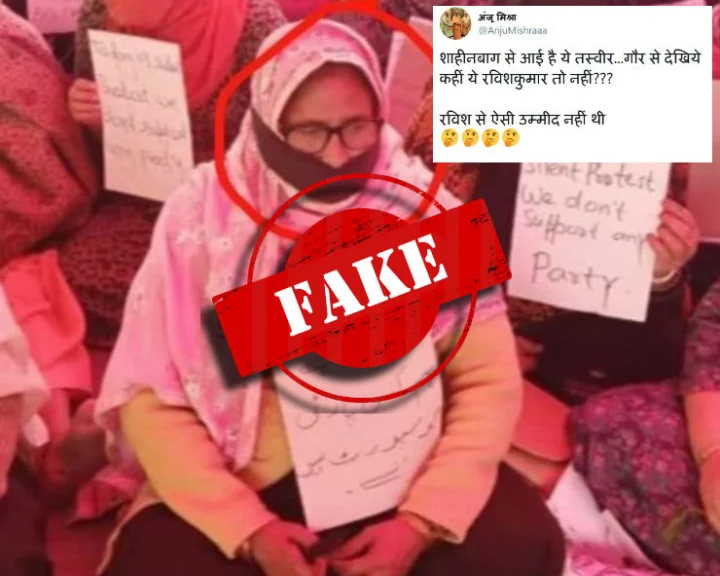 ट्विटर यूजर अंजू मिश्रा ने तस्वीर शेयर करते हुए लिखा, “शाहीनबाग से आई है ये तस्वीर...गौर से देखिये कहीं ये रविशकुमार तो नहीं??? रविश से ऐसी उम्मीद नहीं थी”।