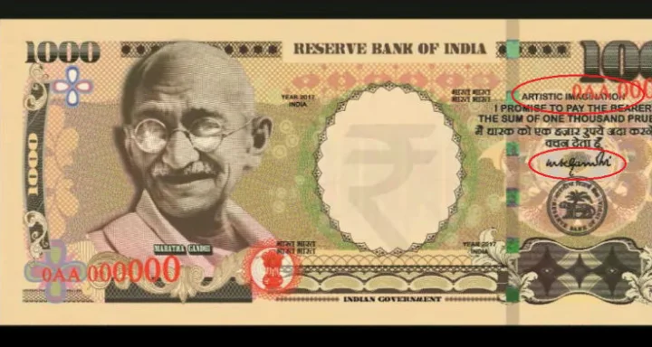 जब हमने वायरल तस्वीरों को गौर से देखा, तो पाया कि नोट में ऊपर दाईं ओर ‘Artistic Imagination’ लिखा हुआ है। इससे साफ जाहिर होता है कि यह नोट असली नहीं है। साथ ही, ‘मैं धारक को एक हजार रुपये अदा करने का वचन देता हूं’ लाइन के बाद महात्मा गांधी के हस्ताक्षर हैं, जबकि वहां आरबीआई गवर्नर के हस्ताक्षर होते हैं।